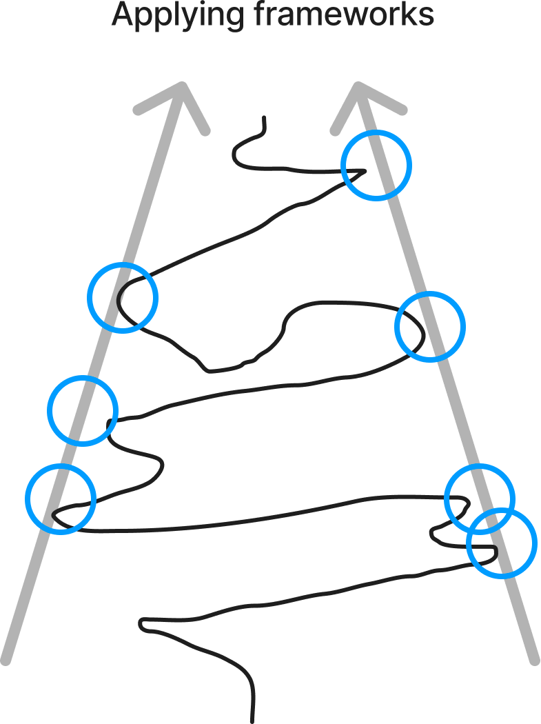These interactions with frameworks are all useful collisions to help guide my thinking while making sure I move forward along the tunnel.
